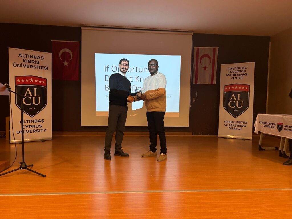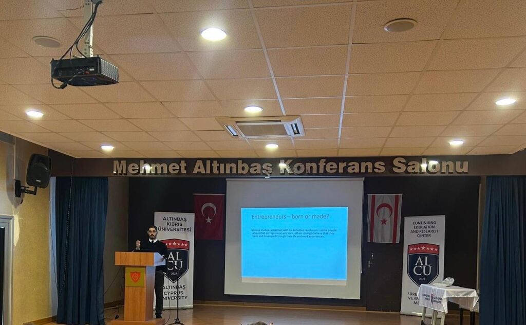 A seminar titled “Entrepreneurship” was held at Altınbaş Cyprus University. The seminar, organized by the Career Development Center of Altınbaş Cyprus University, addressed topics such as the development of young entrepreneurship, opportunities in the business world, and the strengthening of the entrepreneurship ecosystem.